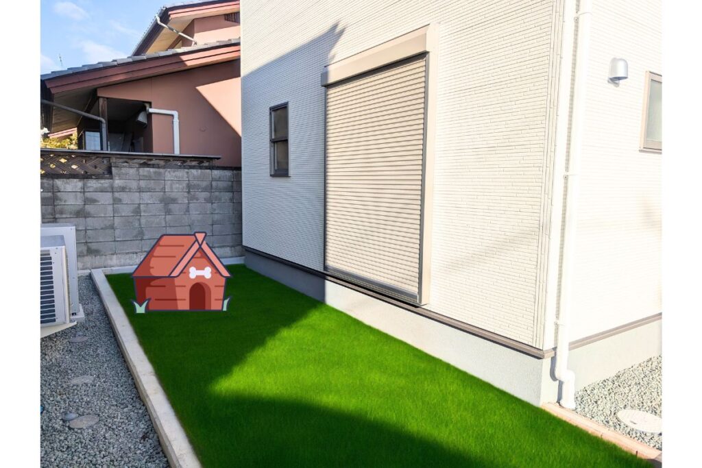 お庭をCG加工しています。窓の部分にシャッターがついているので、防犯にも暴風雨にも◎。