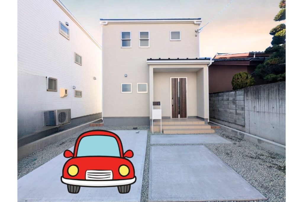 表から見た感じです。車は二台でしょうか。奥まっているので隠れ家的です。