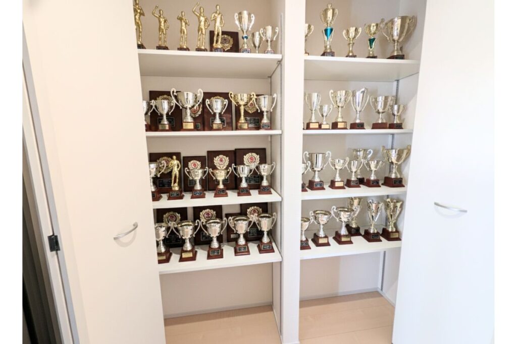 シュークロークにトロフィーを入れてみました。結構収納力がありますね。