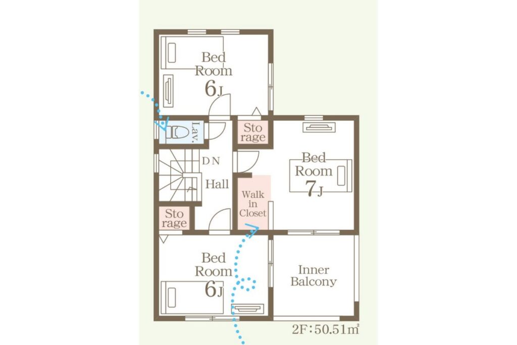 2F 7帖、6帖、6帖+ルーフバルコニー+ウォークインクローゼット