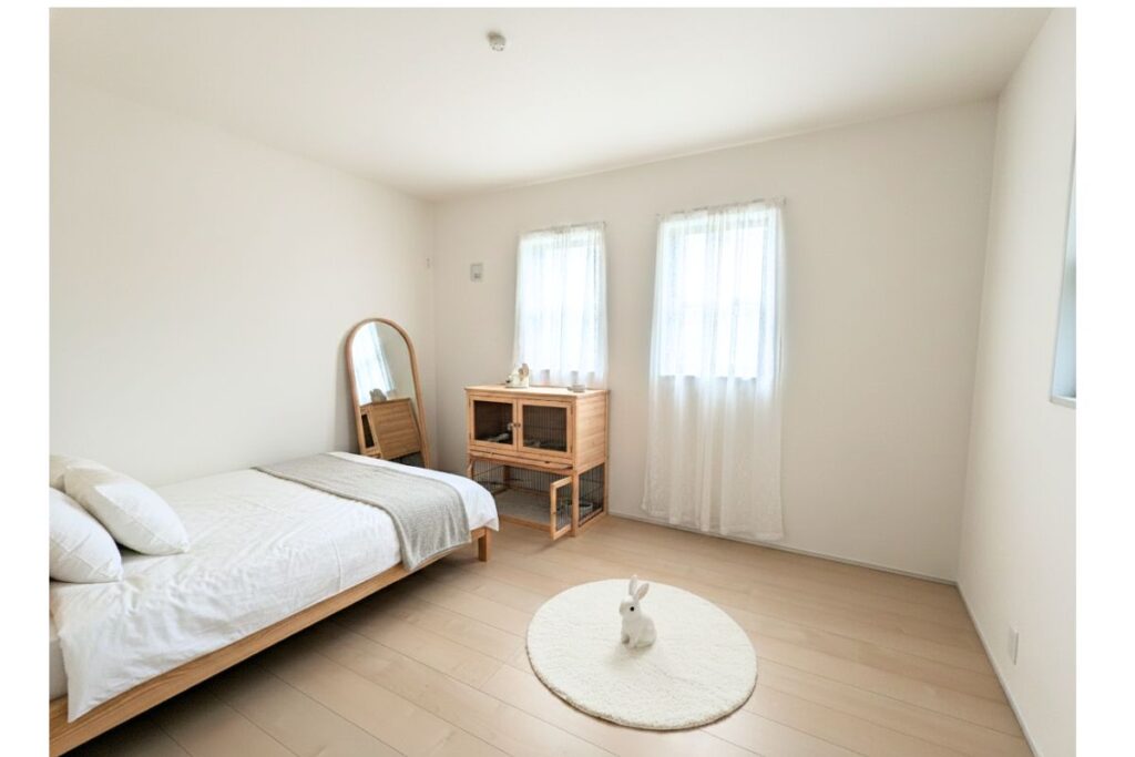 二階の 北の6帖。CG加工してみましたが、動物を飼えるのが戸建てのいいところ。もちろん他にもありますが。今回はウサギを飼ってみました。