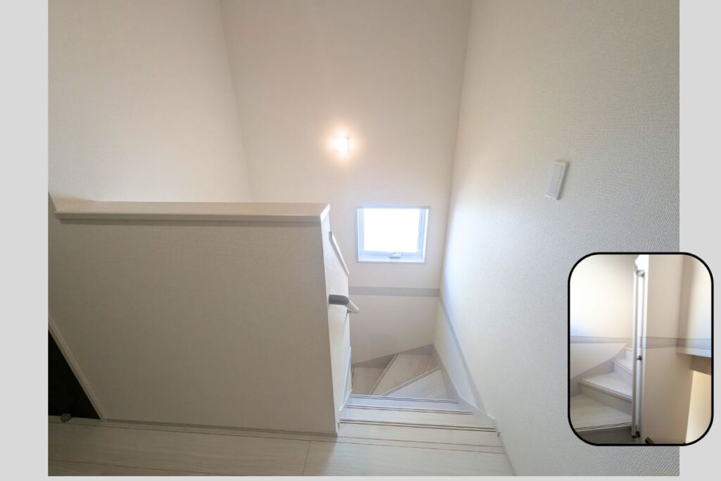 こちらも二階のホールです。階段には手すりがついているので、転倒防止になります。こういう気遣いが嬉しいですね。