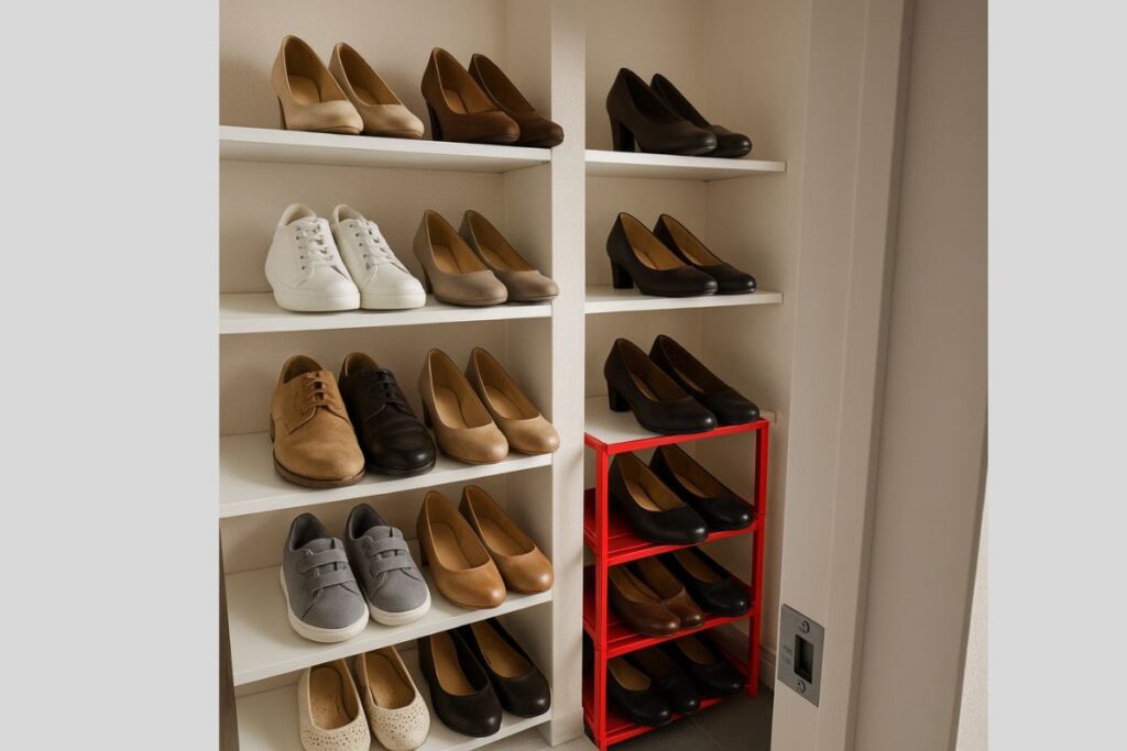 靴を収納に並べてみました。あたらしい生活をイメージいただけたら。