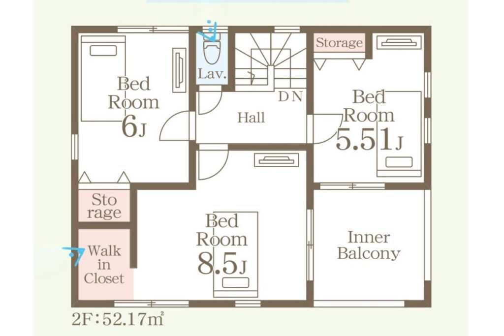 2F 8.5帖、6帖、5.51帖+ルーフバルコニー