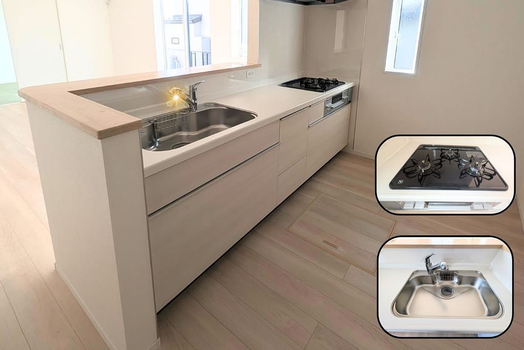 右手の水道で、ざっと汚れを落とせるのも嬉しいですね。スマートロック。EV充電。