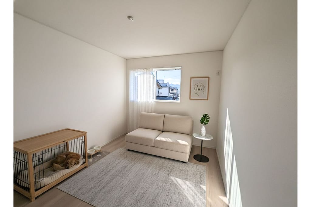 二階 西側6帖を犬を飼ってみました(CG加工しています)犬を飼う人は友達が多いというのが私の経験則です。